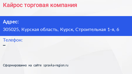 Кайрос, торговая компания по адресу 305025, Курская область, Курск, Строительная 1-я, 6 в дальнейшем Организация, размещена в следующих категориях: