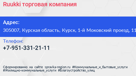 Ruukki, торговая компания по адресу 305007, Курская область, Курск, 1-й Моковский проезд, 11 в дальнейшем Организация, размещена в следующих категориях: