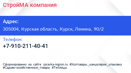 СтройМА, компания по адресу 305004, Курская область, Курск, Ленина, 90/2 в дальнейшем Организация, размещена в следующих категориях: