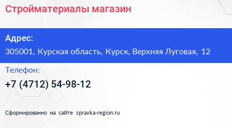 Стройматериалы, магазин по адресу 305001, Курская область, Курск, Верхняя Луговая, 12 в дальнейшем Организация, размещена в следующих категориях:
