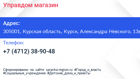 Управдом, магазин по адресу 305001, Курская область, Курск, Александра Невского, 13в в дальнейшем Организация, размещена в следующих категориях: