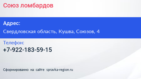 Союз ломбардов по адресу Свердловская область, Кушва, Союзов, 4 в дальнейшем Организация, размещена в следующих категориях: