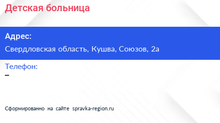 Детская больница по адресу Свердловская область, Кушва, Союзов, 2а в дальнейшем Организация, размещена в следующих категориях: