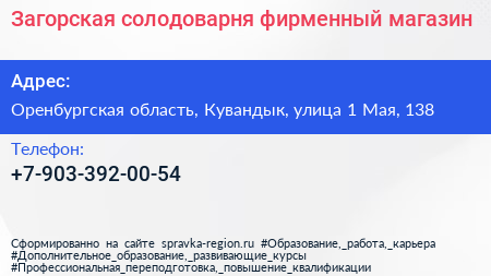 Загорская солодоварня, фирменный магазин по адресу Оренбургская область, Кувандык, улица 1 Мая, 138 в дальнейшем Организация, размещена в следующих категориях: