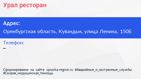 Урал, ресторан по адресу Оренбургская область, Кувандык, улица Ленина, 150Б в дальнейшем Организация, размещена в следующих категориях: