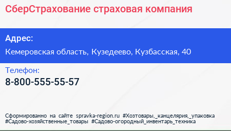 СберСтрахование, страховая компания по адресу Кемеровская область, Кузедеево, Кузбасская, 40 в дальнейшем Организация, размещена в следующих категориях: