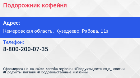 Подорожник, кофейня по адресу Кемеровская область, Кузедеево, Рябова, 11а в дальнейшем Организация, размещена в следующих категориях: