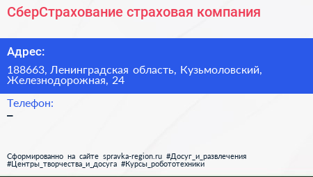 СберСтрахование, страховая компания по адресу 188663, Ленинградская область, Кузьмоловский, Железнодорожная, 24 в дальнейшем Организация, размещена в следующих категориях: