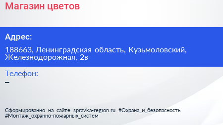 Магазин цветов по адресу 188663, Ленинградская область, Кузьмоловский, Железнодорожная, 2в в дальнейшем Организация, размещена в следующих категориях: