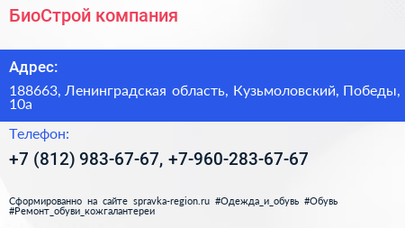 БиоСтрой, компания по адресу 188663, Ленинградская область, Кузьмоловский, Победы, 10а в дальнейшем Организация, размещена в следующих категориях: