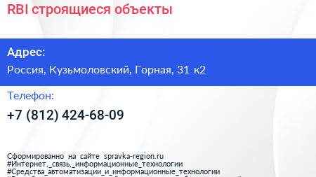 RBI, строящиеся объекты по адресу 31 к2, Горная улица, Мистолово, Бугровское городское поселение, Всеволожский район, Ленинградская область, Северо-Западный федеральный округ, 188660, Россия в дальнейшем Организация, размещена в следующих категориях: