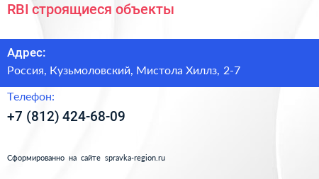 RBI, строящиеся объекты по адресу 13 к2, Горная улица, Мистолово, Бугровское городское поселение, Всеволожский район, Ленинградская область, Северо-Западный федеральный округ, 188660, Россия в дальнейшем Организация, размещена в следующих категориях: