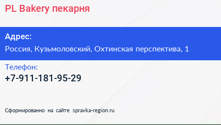 PL & Bakery, пекарня по адресу 1, улица Охтинская перспектива, Коттеджный посёлок "Охтинский парк", Бугровское городское поселение, Всеволожский район, Ленинградская область, Северо-Западный федеральный округ, 188660, Россия в дальнейшем Организация, размещена в следующих категориях: