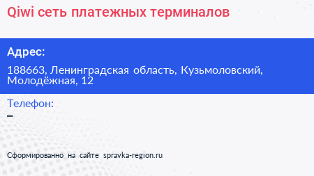 Qiwi, сеть платежных терминалов по адресу 188663, Ленинградская область, Кузьмоловский, Молодёжная, 12 в дальнейшем Организация, размещена в следующих категориях: