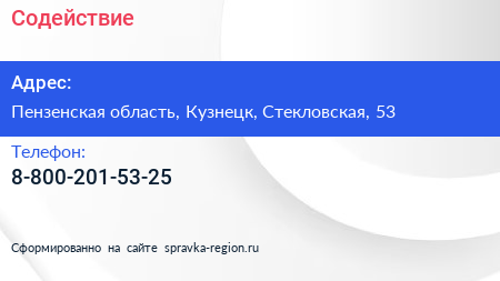 Содействие по адресу Пензенская область, Кузнецк, Стекловская, 53 в дальнейшем Организация, размещена в следующих категориях: