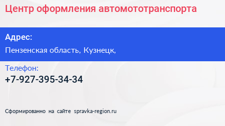 Центр оформления автомототранспорта по адресу Пензенская область, Кузнецк, в дальнейшем Организация, размещена в следующих категориях: