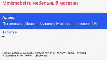Mmkmebel.ru, мебельный магазин по адресу Пензенская область, Кузнецк, Московское шоссе, 19г в дальнейшем Организация, размещена в следующих категориях: