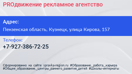 PROдвижение, рекламное агентство по адресу Пензенская область, Кузнецк, улица Кирова, 157 в дальнейшем Организация, размещена в следующих категориях: