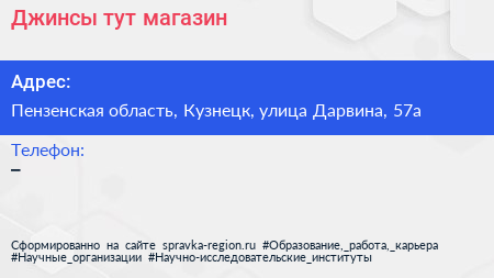 Джинсы тут, магазин по адресу Пензенская область, Кузнецк, улица Дарвина, 57а в дальнейшем Организация, размещена в следующих категориях: