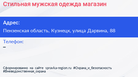 Стильная мужская одежда, магазин по адресу Пензенская область, Кузнецк, улица Дарвина, 88 в дальнейшем Организация, размещена в следующих категориях: