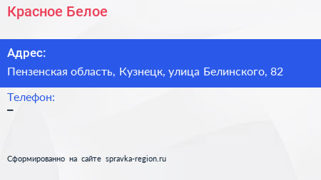 Красное & Белое по адресу Пензенская область, Кузнецк, улица Белинского, 82 в дальнейшем Организация, размещена в следующих категориях: