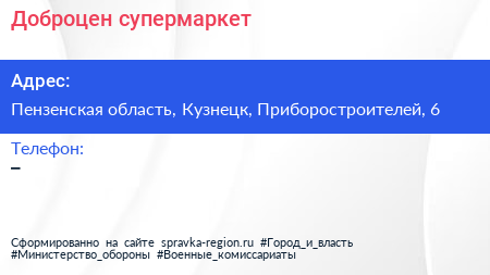Доброцен, супермаркет по адресу Пензенская область, Кузнецк, Приборостроителей, 6 в дальнейшем Организация, размещена в следующих категориях: