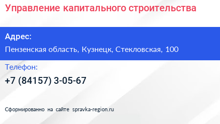 Управление капитального строительства по адресу Пензенская область, Кузнецк, Стекловская, 100 в дальнейшем Организация, размещена в следующих категориях: