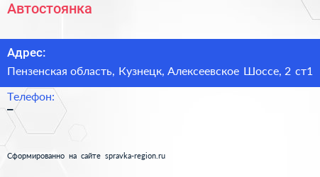 Адрес: Пензенская область, Кузнецк, Алексеевское Шоссе, 3Б/1