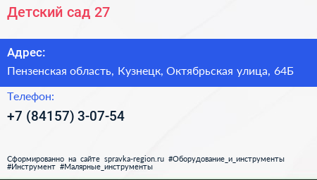 Детский сад №27 по адресу Пензенская область, Кузнецк, Октябрьская улица, 64Б в дальнейшем Организация, размещена в следующих категориях: