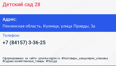 Детский сад №28 по адресу Пензенская область, Кузнецк, улица Правды, 3а в дальнейшем Организация, размещена в следующих категориях:
