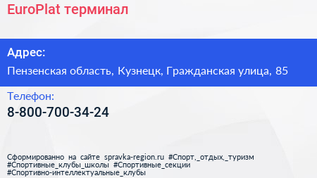 EuroPlat, терминал по адресу Пензенская область, Кузнецк, Гражданская улица, 85 в дальнейшем Организация, размещена в следующих категориях: