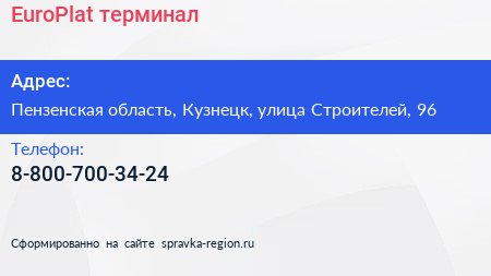 EuroPlat, терминал по адресу Пензенская область, Кузнецк, улица Строителей, 96 в дальнейшем Организация, размещена в следующих категориях: