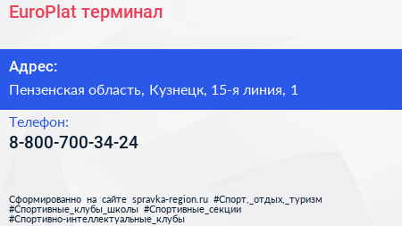 EuroPlat, терминал по адресу Пензенская область, Кузнецк, 15-я линия, 1 в дальнейшем Организация, размещена в следующих категориях:
