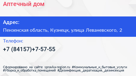 Аптечный дом по адресу Пензенская область, Кузнецк, улица Леваневского, 2 в дальнейшем Организация, размещена в следующих категориях: