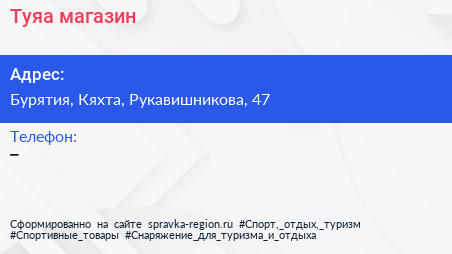 Туяа, магазин по адресу Бурятия, Кяхта, Рукавишникова, 47 в дальнейшем Организация, размещена в следующих категориях: