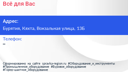 Всё для Вас по адресу Бурятия, Кяхта, Вокзальная улица, 13Б в дальнейшем Организация, размещена в следующих категориях: