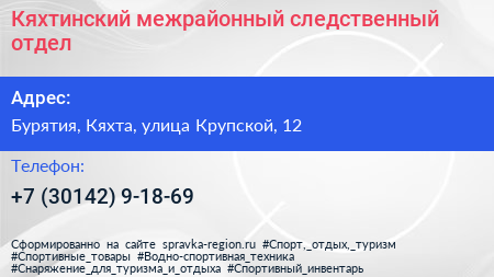 Кяхтинский межрайонный следственный отдел по адресу Бурятия, Кяхта, улица Крупской, 12 в дальнейшем Организация, размещена в следующих категориях: