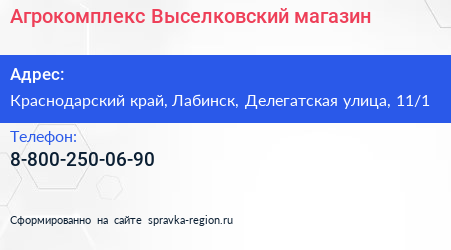 Агрокомплекс Выселковский, магазин по адресу Краснодарский край, Лабинск, Делегатская улица, 11/1 в дальнейшем Организация, размещена в следующих категориях: