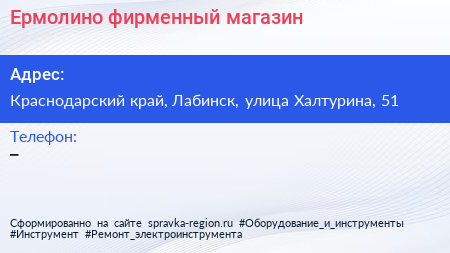 Ермолино, фирменный магазин по адресу Краснодарский край, Лабинск, улица Халтурина, 51 в дальнейшем Организация, размещена в следующих категориях: