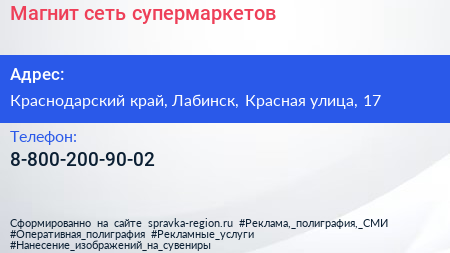 Магнит, сеть супермаркетов по адресу Краснодарский край, Лабинск, Красная улица, 17 в дальнейшем Организация, размещена в следующих категориях: