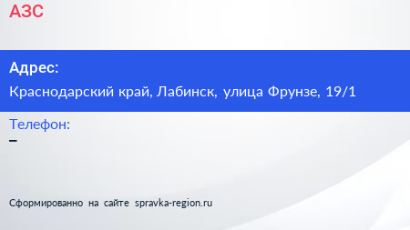 АЗС по адресу Краснодарский край, Лабинск, улица Фрунзе, 19/1 в дальнейшем Организация, размещена в следующих категориях: