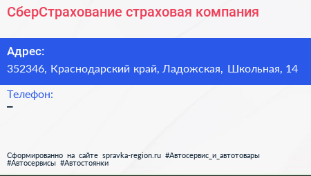 СберСтрахование, страховая компания по адресу 352346, Краснодарский край, Ладожская, Школьная, 14 в дальнейшем Организация, размещена в следующих категориях: