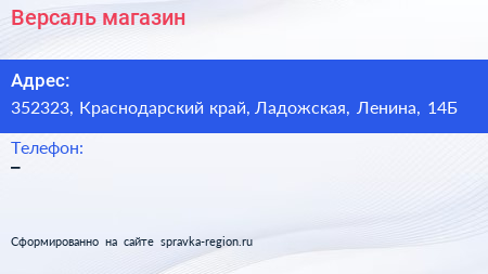 Версаль, магазин по адресу 352323, Краснодарский край, Ладожская, Ленина, 14Б в дальнейшем Организация, размещена в следующих категориях: