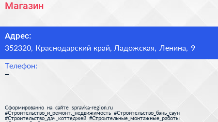 Магазин по адресу 352320, Краснодарский край, Ладожская, Ленина, 9 в дальнейшем Организация, размещена в следующих категориях: