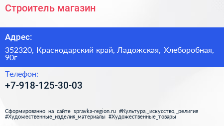 Строитель, магазин по адресу 352320, Краснодарский край, Ладожская, Хлеборобная, 90г в дальнейшем Организация, размещена в следующих категориях: