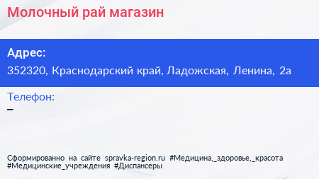 Молочный рай, магазин по адресу 352320, Краснодарский край, Ладожская, Ленина, 2а в дальнейшем Организация, размещена в следующих категориях:
