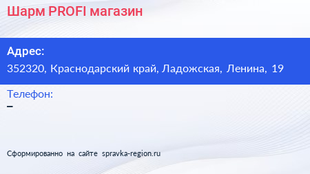 Шарм PROFI, магазин по адресу 352320, Краснодарский край, Ладожская, Ленина, 19 в дальнейшем Организация, размещена в следующих категориях: