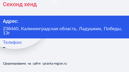 Секонд-хенд по адресу 238460, Калининградская область, Ладушкин, Победы, 13г в дальнейшем Организация, размещена в следующих категориях:
