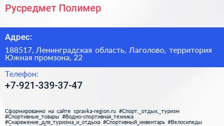 Русредмет Полимер по адресу 188517, Ленинградская область, Лаголово, территория Южная промзона, 22 в дальнейшем Организация, размещена в следующих категориях: