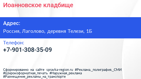 Иоанновское кладбище по адресу Часовня Иоанна (Богоявленского), 41К-273, Лаголовское сельское поселение, Ломоносовский район, Ленинградская область, Северо-Западный федеральный округ, 188517, Россия в дальнейшем Организация, размещена в следующих категориях: